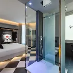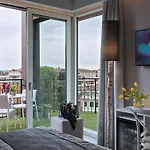 この客室はカ-ペットを敷いた床も備わっています. コンパクトな客室の一部からは街路の景色を眺めることができます.